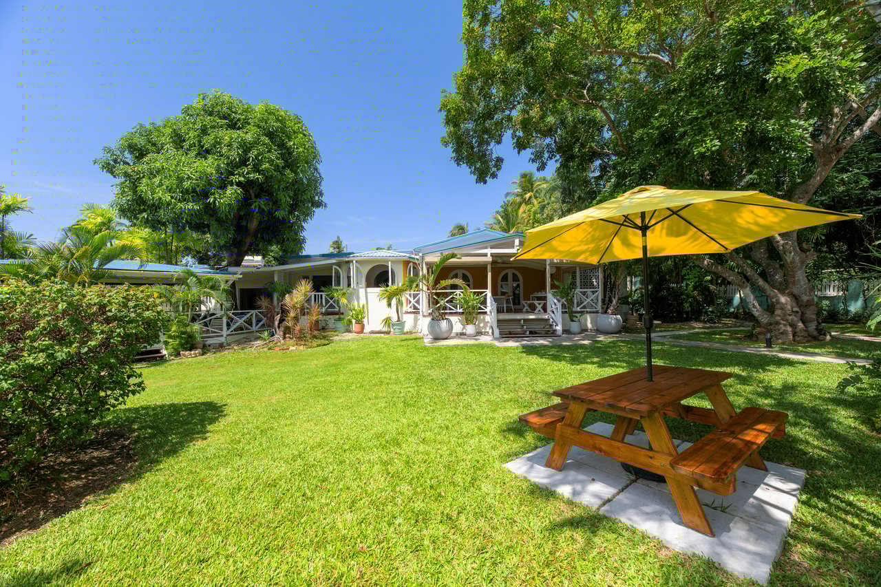 Welcome to Mullins Bay House, a rare and exciting opportunity for buyers seeking a holiday retreat or rental investment in a sought-after area just a short stroll to the world-renowned Mullins Beach on the West coast of Barbados. Set on four individual lots this beautifully maintained property offers 7 bedrooms and 6 bathrooms spread over 38,474 sq.ft. of land. Surrounded by an acre of lush, manicured gardens, this charming Bajan style single-storey residence is being offered fully furnished.