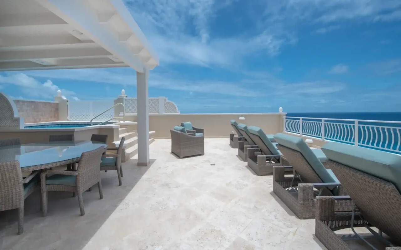 This sprawling three bedroom penthouse residence surveys 180° views of the Atlantic Ocean from an expansive roof deck complete with al fresco dining and a private pool.