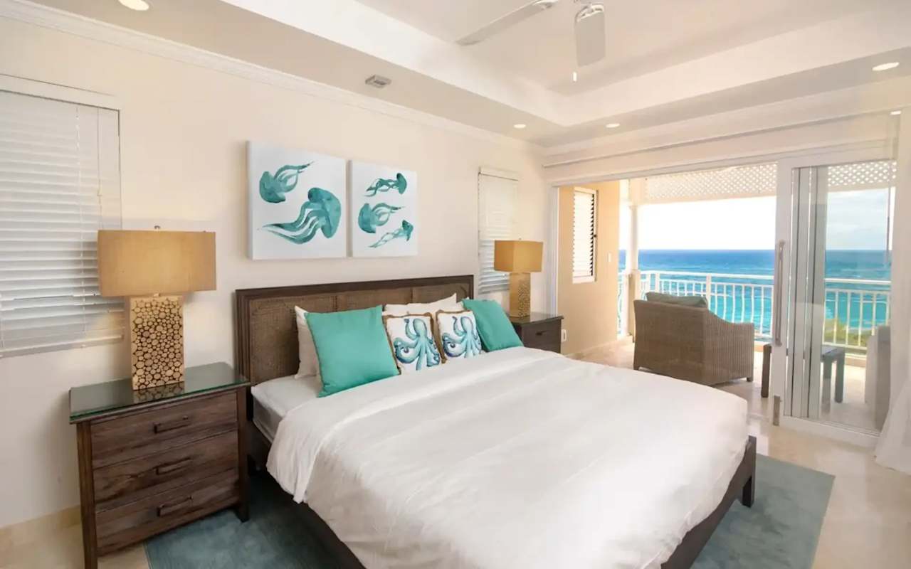 This spacious one-bedroom, one-bathroom apartment offers expansive views of the Atlantic Ocean.